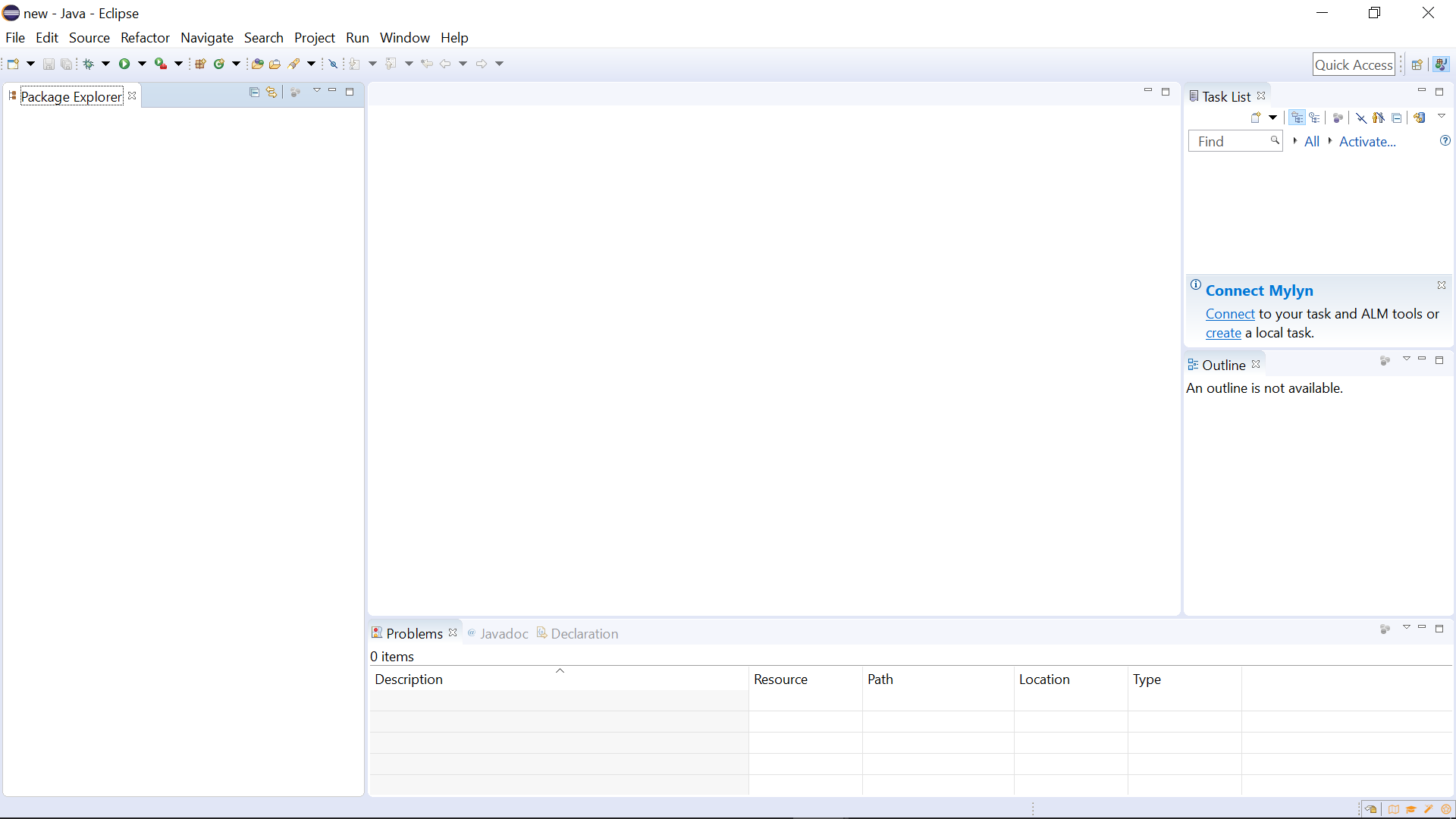 From the welcome screen you can access the Eclipse tutorials, and other supporting material. Close it; you will be able to visualize it at any time by going to the Help/Welcome menu.